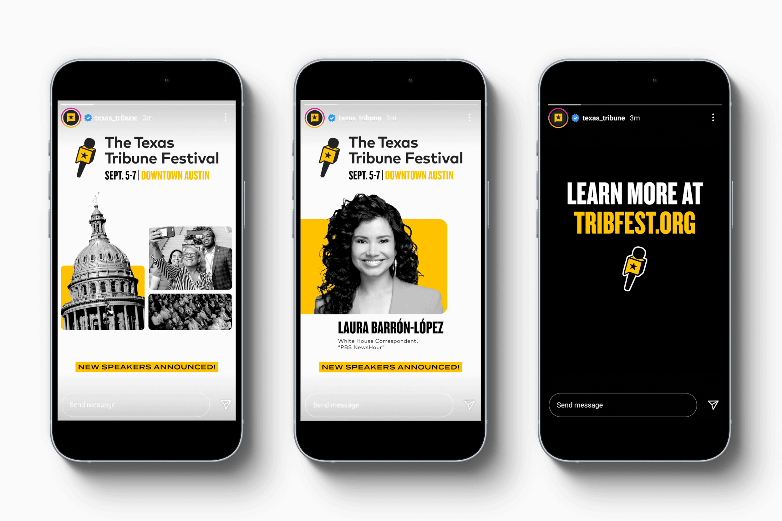 Revitalize the Festival’s visual identity to reflect its dynamic, high-energy spirit designed to resonate with newcomers to The Texas Tribune. The refreshed look aimed to boost brand visibility, grow membership engagement, and attract new sponsors and partners across both Festival and year-round programming.