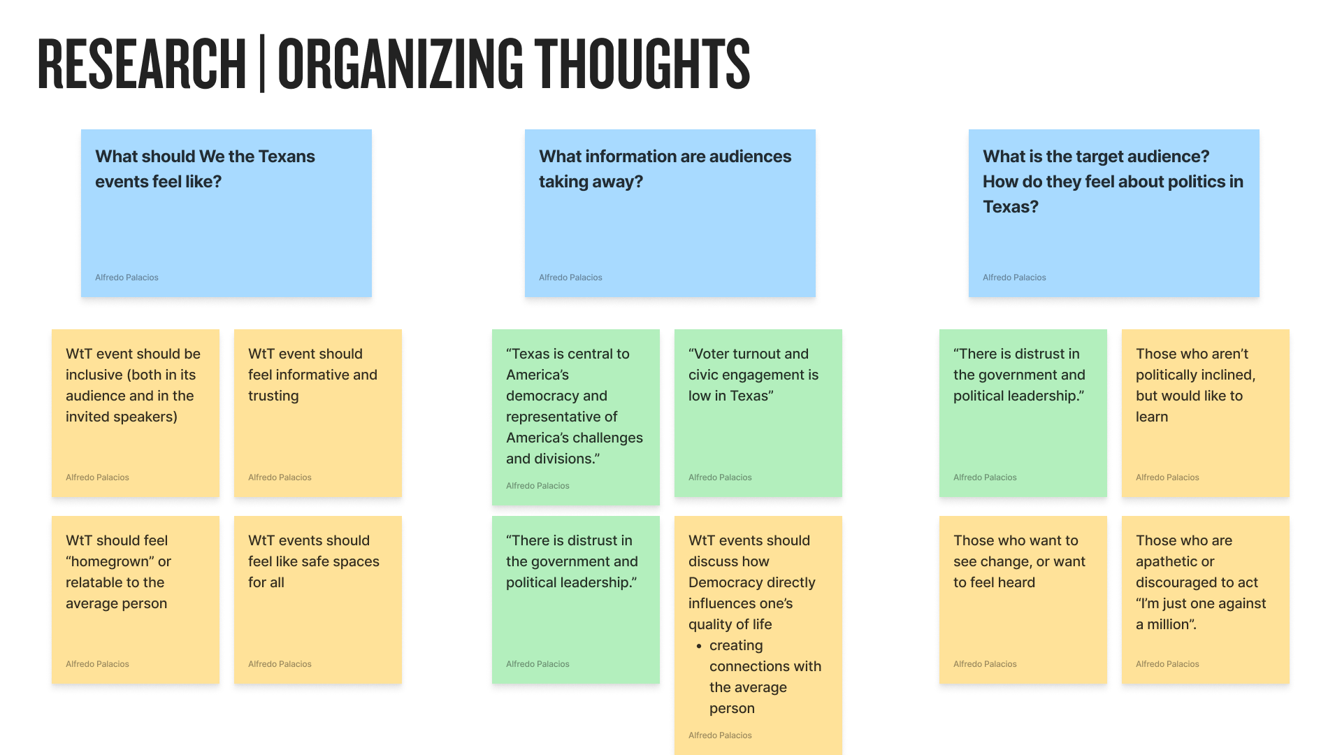 To kick off finding the visual identity to this initiative, I first needed to understand the intention and goal of every event under We the Texans: